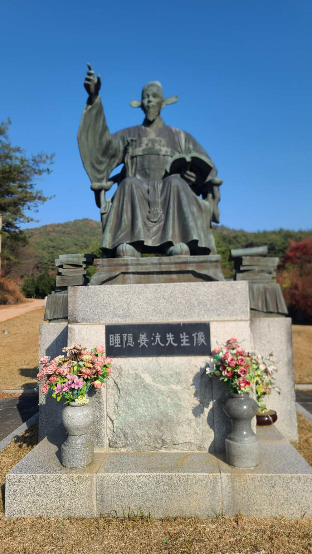 강항선생은 1600년에 가족과 함께 고국으로 돌아와, 관리로 임명되었으나 스스로 죄인이라 칭하고 일찍 사임하거나 취임하지 않았다. 서원을 걸어나오는 길에 보이는 홍단풍나무는 선생의 굳은 절개 나라에 충성하는 마음을 표현하고 있는 듯하다. 일본 적중에서도 왜적의 정세와 인적사항, 일본국 지도 등을 밀서로 우리 조정에 보냈다고 한다. 오늘의 우리가 갚이 본받을 사례이다. 영광 불갑면 내산서원을 방문하기를 강추한다.