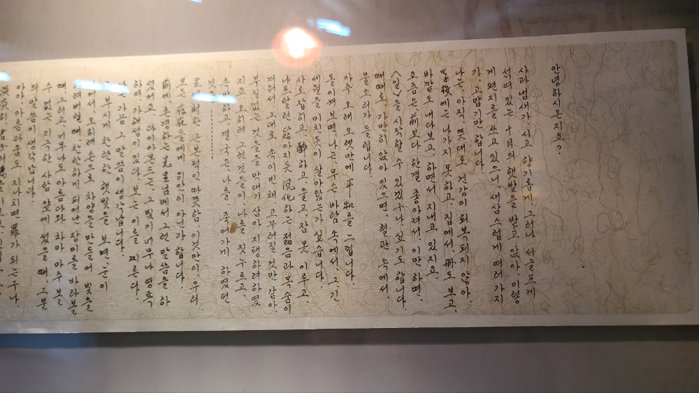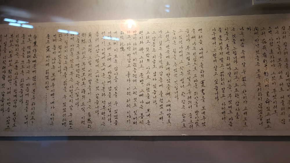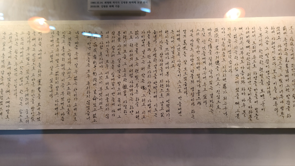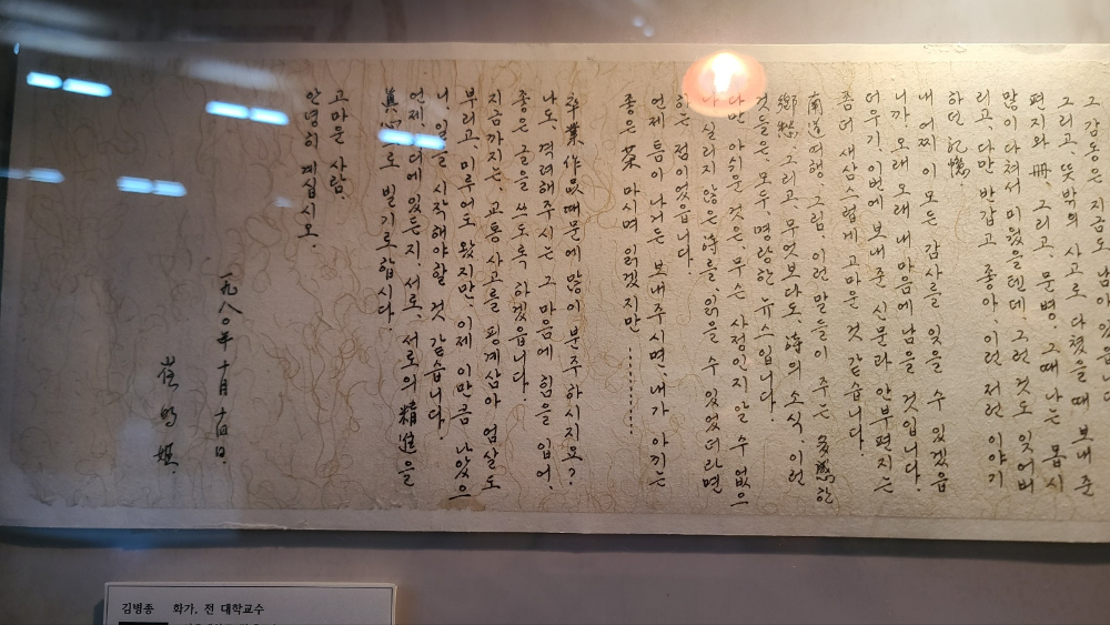 전라북도 남원시 사매면에 가면 [혼불문학관]이 있다. <혼불>은 故 崔明姬씨가 1980년 4월부터 1996년 12월까지 장장 17년동안 쓴 대하소설이다. 전라도 지방의 언어, 문화 등이 세밀하고 아름다운 우리 언어로 채색된 문학의 정수라고 할 수있다. 문학관에 전시된 편지[수신: 김병종 교수, 서울대 미대학장 등 역임, 이 편지를 기부한 분, 전북 남원출신]를 읽자니 그들의 교류가 무척 아름답고 부럽기까지 하다.